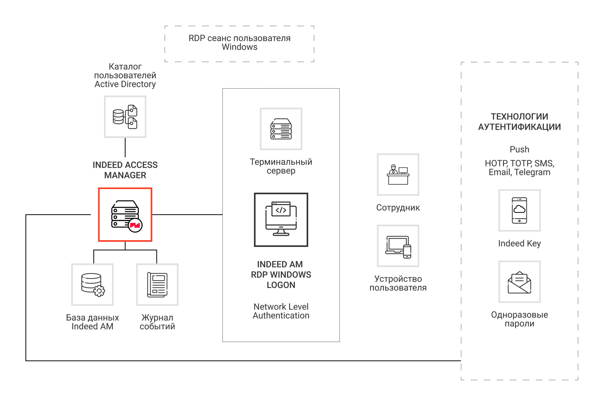 RDP Windows Logon поддерживает следующие технологии аутентификации пользователей: